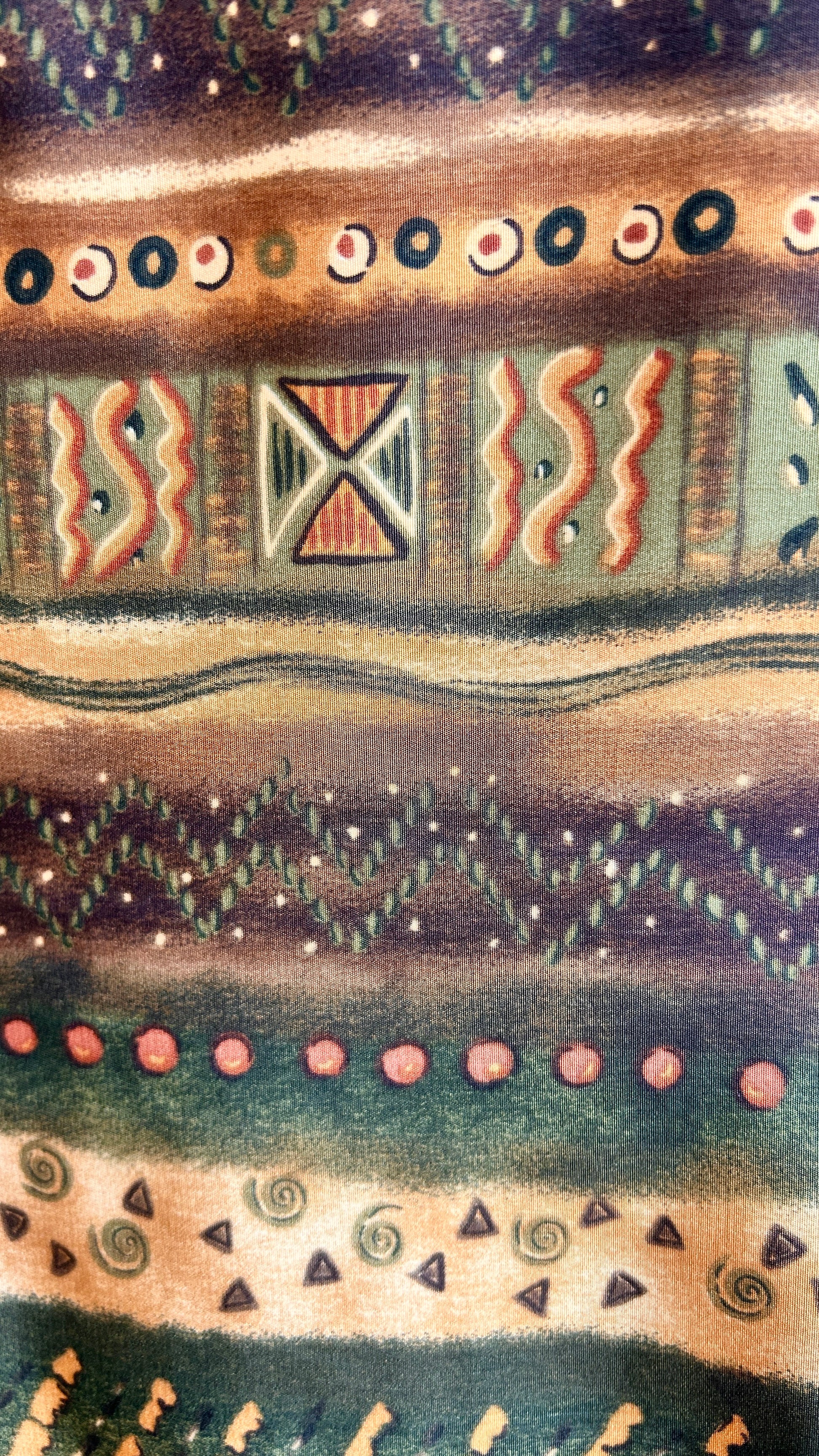 vintage 1990s brown + olive green patterned mini shift dress with a zipper on the back